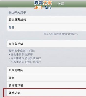 2.在通用界面中,点击“辅助功能”选项。