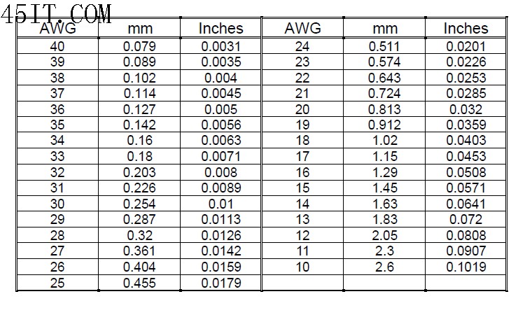 线缆的供电上主要就是看电压差了,差不多也就是其线阻了,在我们讨论的电流范围内,把线阻看成是线性的也不会有多大偏差的!线阻决定于三个方面,一个是长度,一个是线材,一个是直径。所以从应用角度来说,在可能的范围内,线的长度越短越好,短线即使是单位线阻高,但你的长度小,其绝对值也不会很大,但这条对现在占绝大多数应用的机箱在桌下并不合适,而且现在由于机箱厂家成本节省,绝大多数情况下,前置USB口并不保险,谁知道其中的线缆损耗有多大!第二点就是线材了,现在市场上常见的USB线材有铜包钢、铜、镀锡铜,按顺序材质的导电率是越来越好,所以好的USB线都是镀锡铜的。第三就是直径,这个在前两点都确定的情况下就是线材的关键了。直径在国际上是用AWG标准来称呼的,下表就是AWG的列表