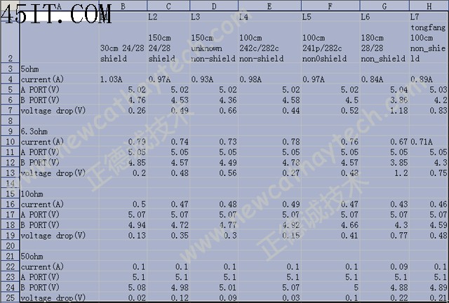 我们找了7条线简单的测试了一下压降,给大家一个参考。