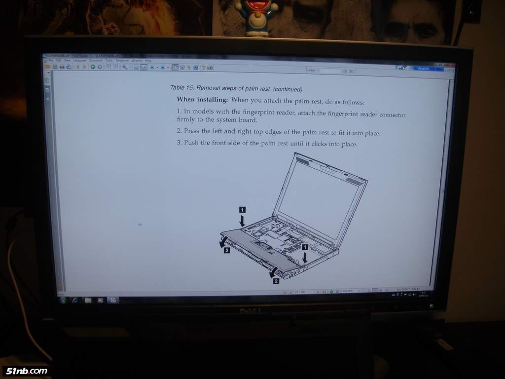 3.拆机。先拆背面键盘螺丝,然后卸下键盘;再拆背面掌托螺丝,然后卸下掌托。不会拆机的请看IBM官方出的非常详细的“X200拆机维修指南”。下载地址ftp://ftp.software.ibm.com/pc/pccbbs/mobiles_pdf/43y6632.pdf
