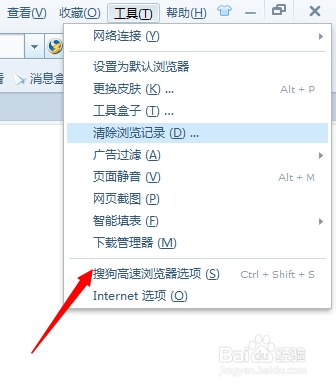 为了防止搜狗自动弹出设置为默认浏览器选择,我们再把它去掉这个提醒。在搜狗导航点击工具。