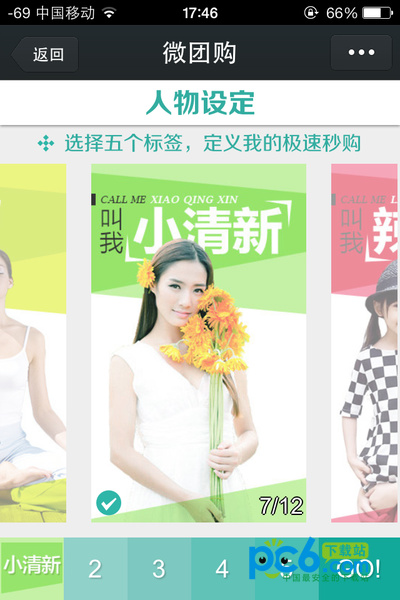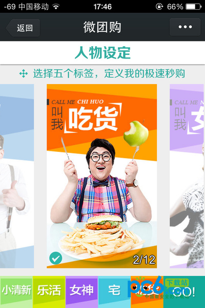 2、开始极速之旅,出现下面的界面,有小清新,女神,土豪,宅等等标签,玩家给自己定义,选择五个就可以了,点击图片就能选择。