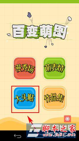 1)首先打开百变萌图软件,进入首页,点击“大头贴”按键。(如下图所示)