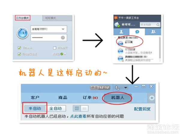 陆续接到各行业商家的测试申请,非常谢谢大家的支持。相信,商家机器人在大家的努力下,会做的更好。以下是试用淘宝商家机器人的操作手册,请按照操作指导进行体验。
