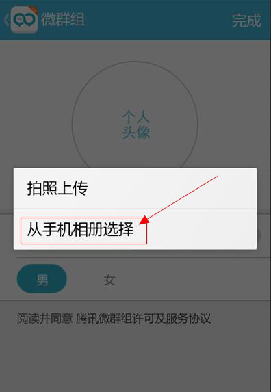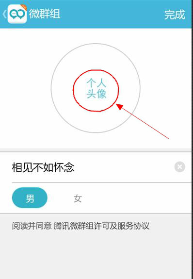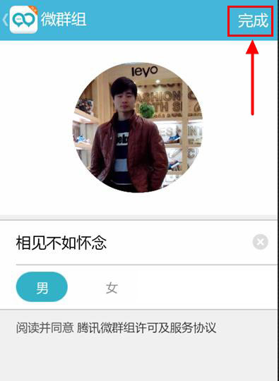 第四步:上传完成之后,我们点击完成,如图所示。我们之后就进入到微群组的界面。