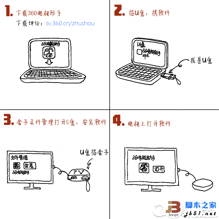 推荐方法1:用U盘给盒子安装360电视助手——海量免费软件,玩转电视盒子。