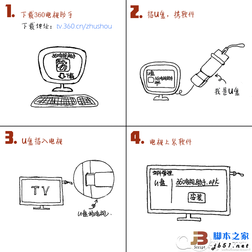 推荐方法1:U盘安装360电视助手——海量应用随心下载