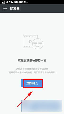 2)我们可以看到“朋友圈”这个一功能,点击进去,然后在“立即加入”中点击一下。(如下图所示)