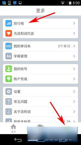 1)打开【英语流利说】,点击【更多】,然后点击【排行榜】;(如下图所示)