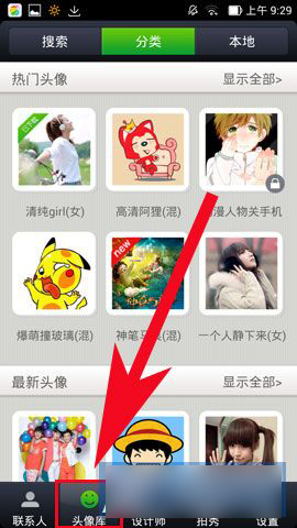 1)首先,在自己手机上下载头像淘淘,点击进去之后找到屏幕下方的【头像库】。(如下图所示)