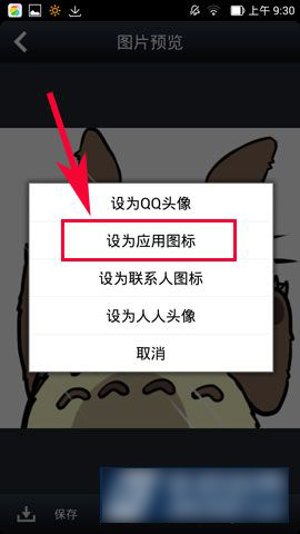 3)点击【设为】之后在选择栏点击【设为应用图标】,然后出现的软件中,选择自己要改的软件图标点击确定(如图所示)