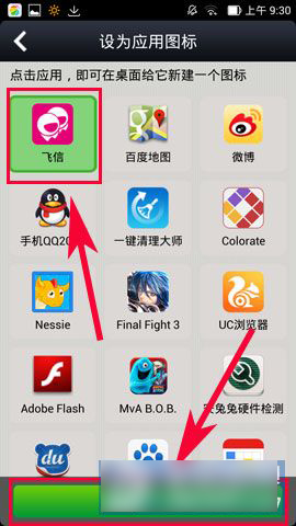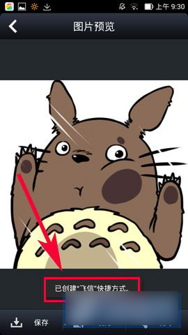 4)点击成功之后会出现(已创建‘飞信’快捷方式),然后到手机桌面看看自己设置的图像吧!(如图所示)