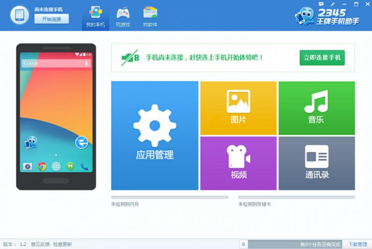 在“我的手机” 显示“手机尚未连接”,看不到手机概况,您可以进入“玩游戏”,“找软件”进行浏览。