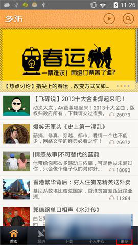 1)首先打开多听fm网络电台软件,进入首页界面,点击“更多”按键。(如下图所示)