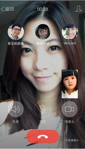 在5.0版本上,可以在多人通话环节中开启摄像头,直接进入多人视频,用户自己的摄像头可以随意前后切换。在多人视频中,点击视频中的参与方,屏幕将以对方画面为主,通话一段时间后隐去操作界面,仅保留视频内容。这让身处各地的三五好友面对面聊天不再是困难的事。