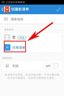 2)点击【共享清单】,然后输入你要共享那人的名字或者邮箱(如下图所示)