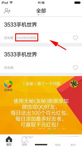 在友秘上我们可以畅所欲言。如果你怕自己的秘密,在友秘上太久而被朋友察觉到,那么可以设置为定时毁信状态,下面就教大家发表定时销毁信息设置图文方法