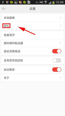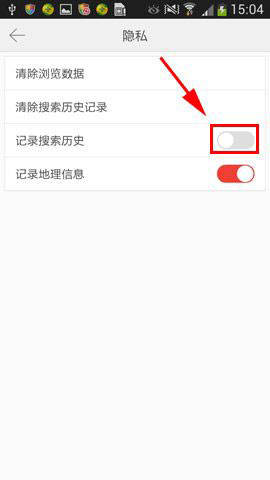 2)在设置界面中点击【隐私】,最后将【记录搜索历史】调整成失效状态即可。(如下图)