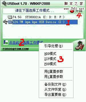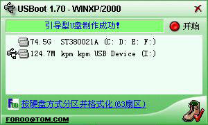 * 方案A(老方法),使用 USBOOT v1.7, 适于多数小容量(512MB及以下)U盘和2006年以前的电脑