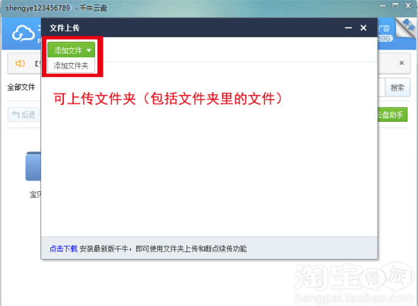 它的上传文件功能,也做了人性化的设计,可以上传文件夹,这对于我这个图片众多的卖家简直就是雪中送炭呀,总之,千牛云盘给我带来的方便不是一点点,让我很满意。