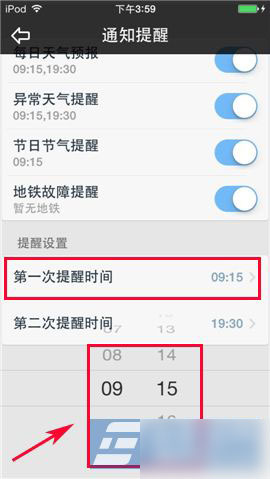 天气通怎么设置提醒时间?