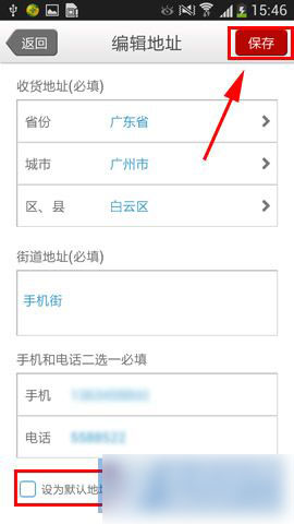 2)点击【添加新地址】;输入详细信息后可根据所需选择是否作为默认地址,设置完毕后点击【保存】。(如下图)