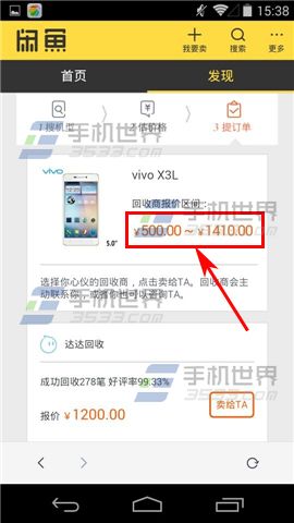 4)回答完后点击下方的【完成评估 查看报价】,页面跳转后就可以查看现在的回收报价啦。(如下图)