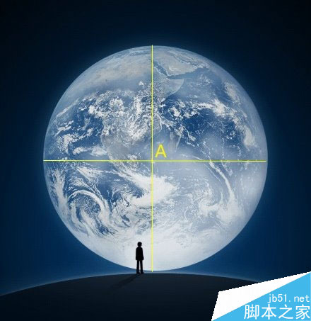 首先,小人向地心望去,我们视线与地心的连线将落在地球圆面的圆心。于是在图片作图,画出两条直径,交点A即为圆心。也就是说,小人所处的位置,位于A点的正上方。如果你像我一样是个文科生,肯定很熟悉地球仪,你会发现A点西边是非洲大陆,东北方向一点点是马达加斯加。