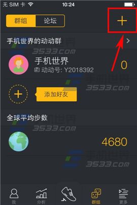 1)下载并安装【动动】,进入界面后点击右下方【群组】再点击右上角【+】按键。(如下图)