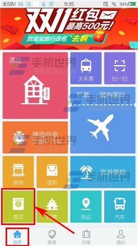 1)首先打开【去啊旅行】,进入界面后点击左下角【首页】再点击上面的【签证】,然后选择自己要去旅行的地点,如果没找到就点击上方的话题框内输入查找。(如下图)