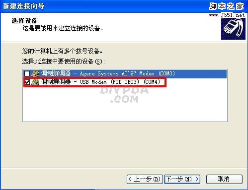 接下来的这一步,要注意选择6900的调制解调器,即选择“USB MODEM”,就是下图红框里的那个。