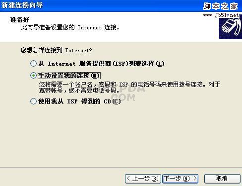 出现下面的对话框,选“手动设置我的连接”