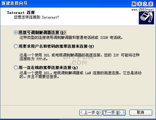 这一步里,选“用调制解调器连接”,见下图