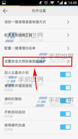 2)接着点击【软件设置】,然后点击【设置安全大师自身密码保护】。(如下图)