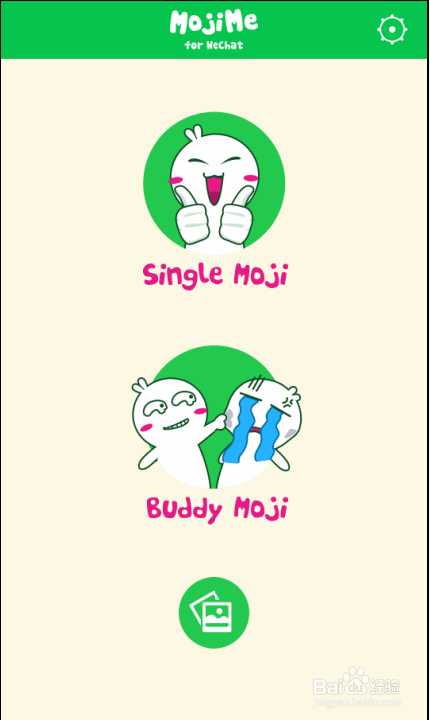 1、首先下载一款微信的MojiMe 自定义表情制作工具到手机,安装完成后,在手机中打开 “ MojiMe ” ,先制作一个 “ 单人动画表情 ” 或者制作一个 “ 双人动画表情 ” 。
