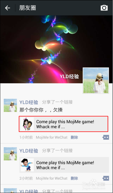 4、进入朋友圈后,就可以看到你刚刚分享的 MojiMe 表情链接啦!然后直接点击打开链接。