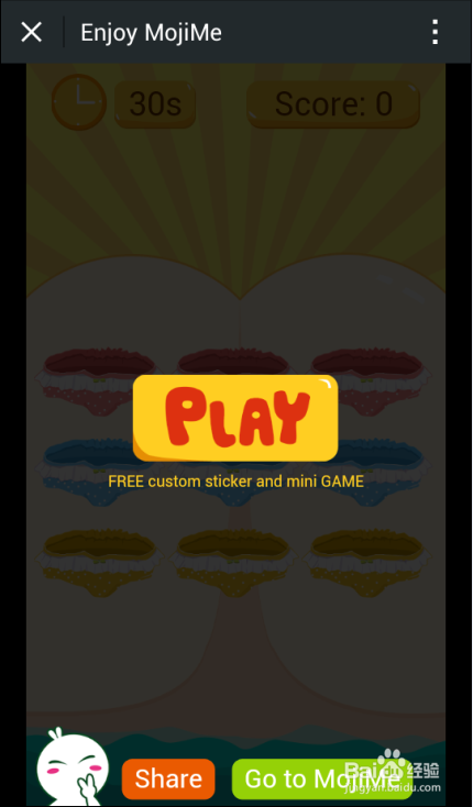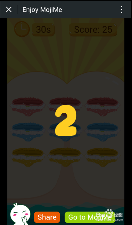 7、MojiMe 游戏界面上一共有九个洞洞、你制作的头像表情会随机从某一个洞洞跳出来。