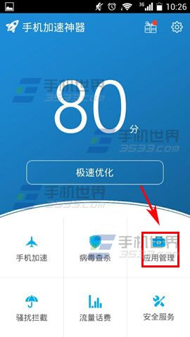 1)首先先打开【手机加速神器】,进去之后点击【应用管理】。(如下图)