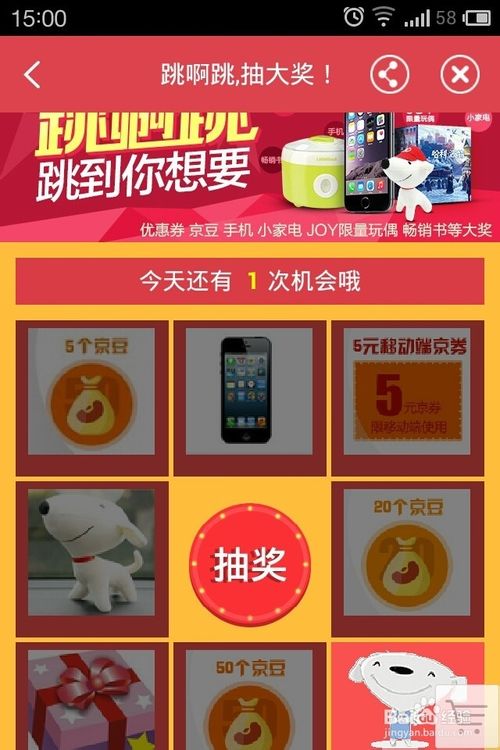 4、点击“跳啊跳”也可以抽中京豆的,但是每天只有三次机会