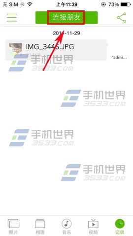 1)首先打开闪传,首先用户要在自己手机设置WIFI,点击连接【ADYYSGFpZXI】,(小编提示:iphone和安卓机型才需要连接WIFI),然后返回闪传界面点击【连接朋友】。(如下图)