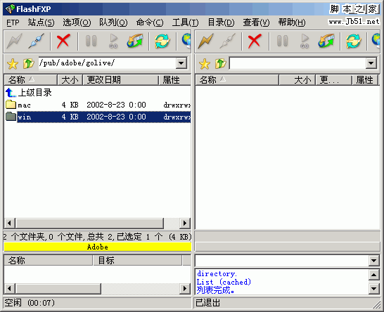 1.选择“站点”/“站点管理器”,在站点管理器中选择FlashFXP自带的FTP站点,例如选择Adobe。点击连接,连上FTP下载站点。