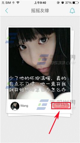 2)进入界面用手机摇一摇或者点击中间圆点,然后摇出友缘,点击【认识一下】。(如下图)
