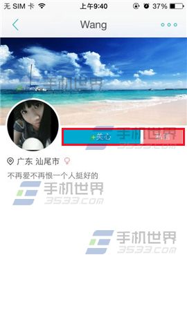 3)进入界面即可查看他人资料,用户可以选择添加关心或者发私信聊天。(如下图)