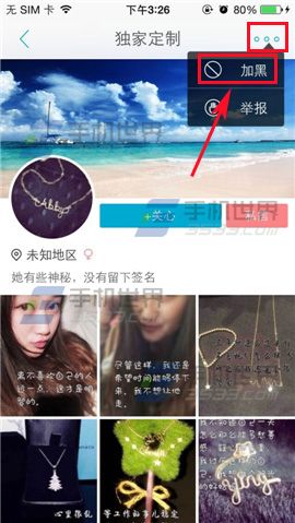 2)在右上方点击【三点】,弹出窗口点击【加黑】,然后点击【确定】即可加入黑名单。(如下图)