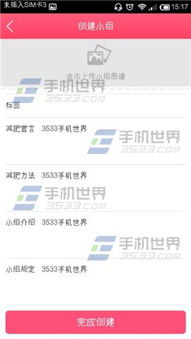3)输入小组名称、减肥宣言、方法、小组介绍以及小组规定,这些是必填的哦,完成后点击【完成创建】即可。(如下图)