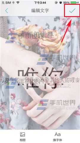 3)在界面选择一张图片点击一下,然后在方框输入文字,在右上方点击【√】。(如下图)