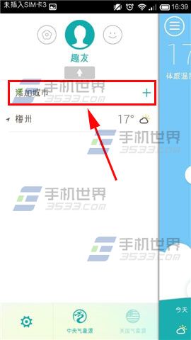 1)打开【知趣天气】,点击左上角的三条杠【三】。(如下图)