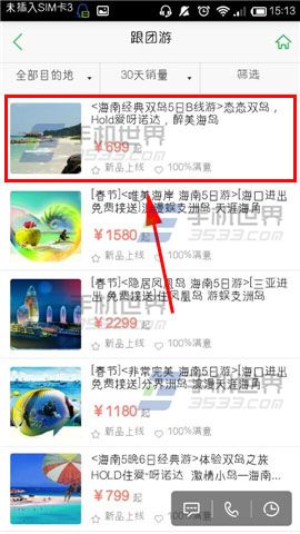 1)打开【途牛旅游】,选择一个【目的地】点击进去。(如下图)