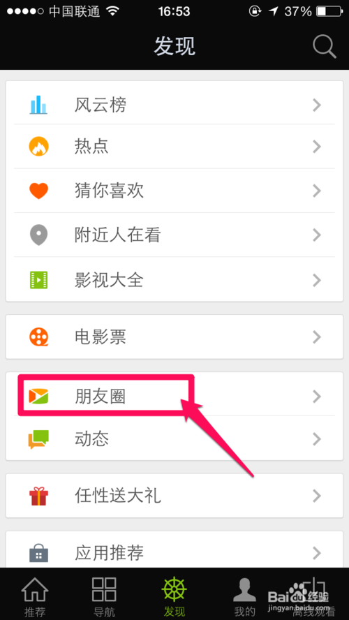 2、接着进入朋友圈。