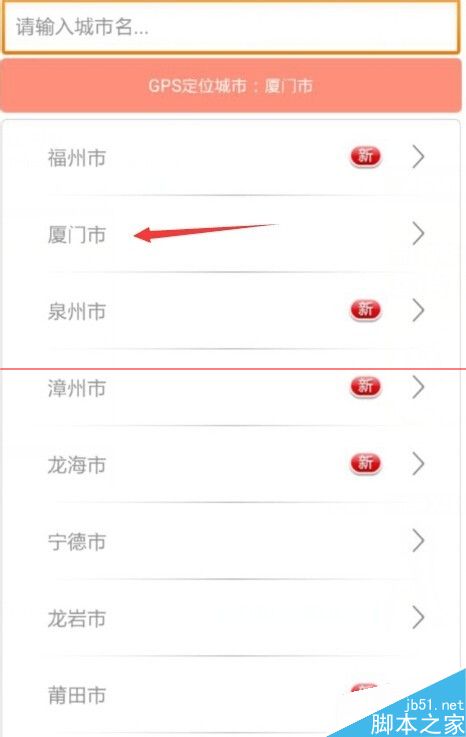 4、打开软件之后要先选择所在城市,以厦门市为例。